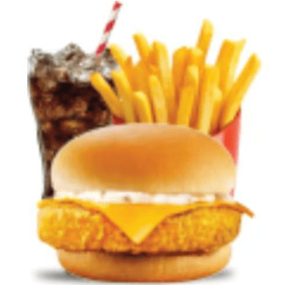 Lightly crispy fish fillet, topped with cheese and classic tartar sauce, finished on a soft, butter-toasted bun. Comes with golden fries and a refreshing soda