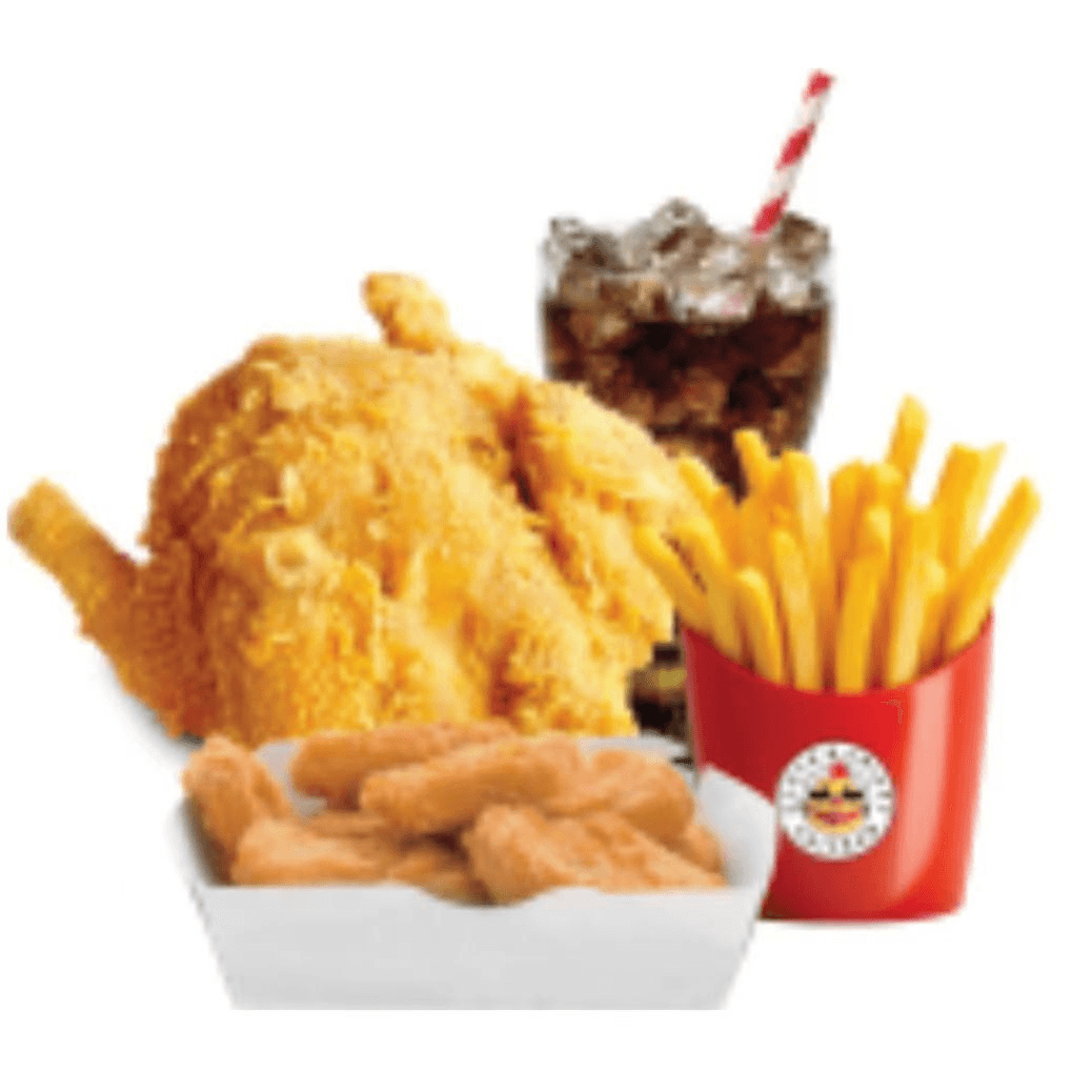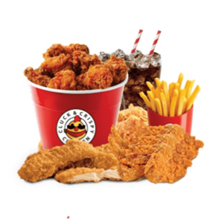 A generous bucket of our fried classics featuring drumsticks, wings, and tenders, paired with crispy French fries and two sodas. Perfect for sharing.