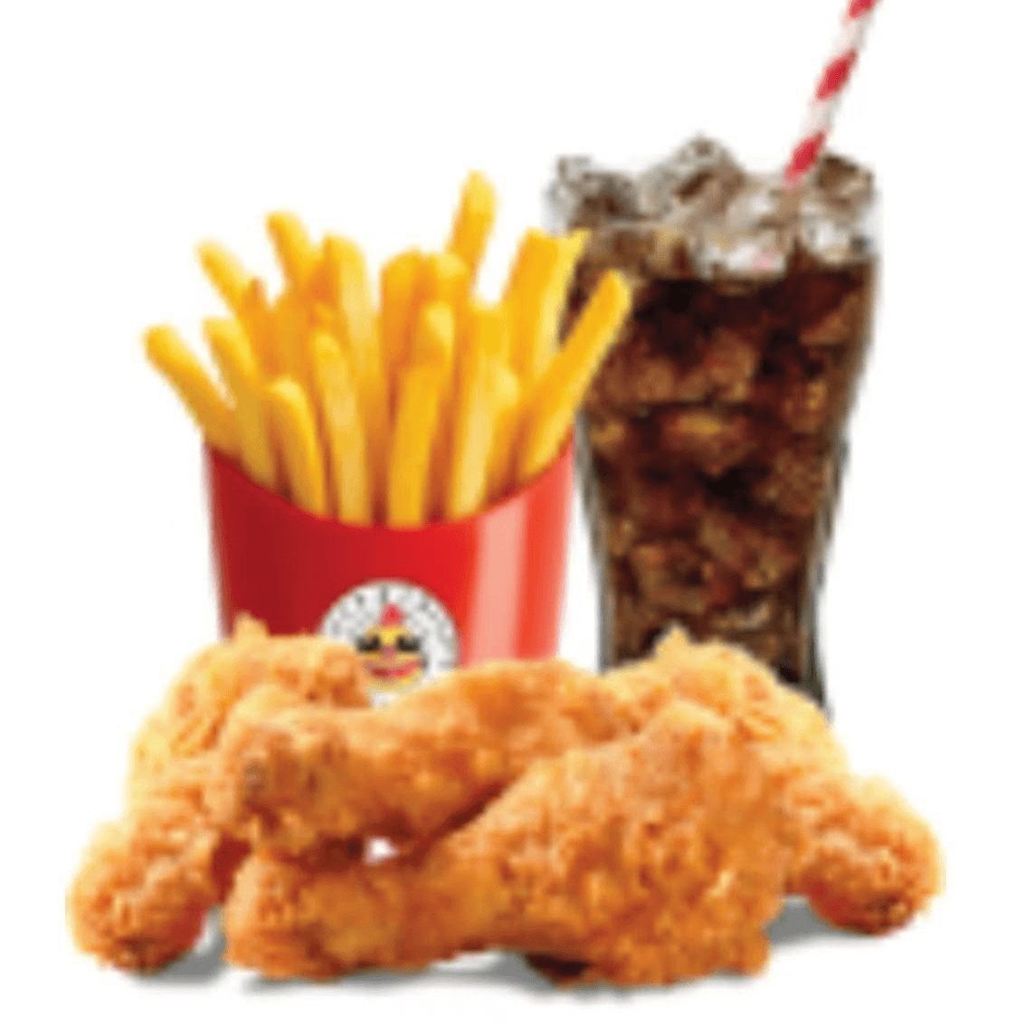 Expertly seasoned whole chicken wings, fried to create a perfectly crisp exterior and tender, juicy interior. Comes with golden fries and a refreshing soda